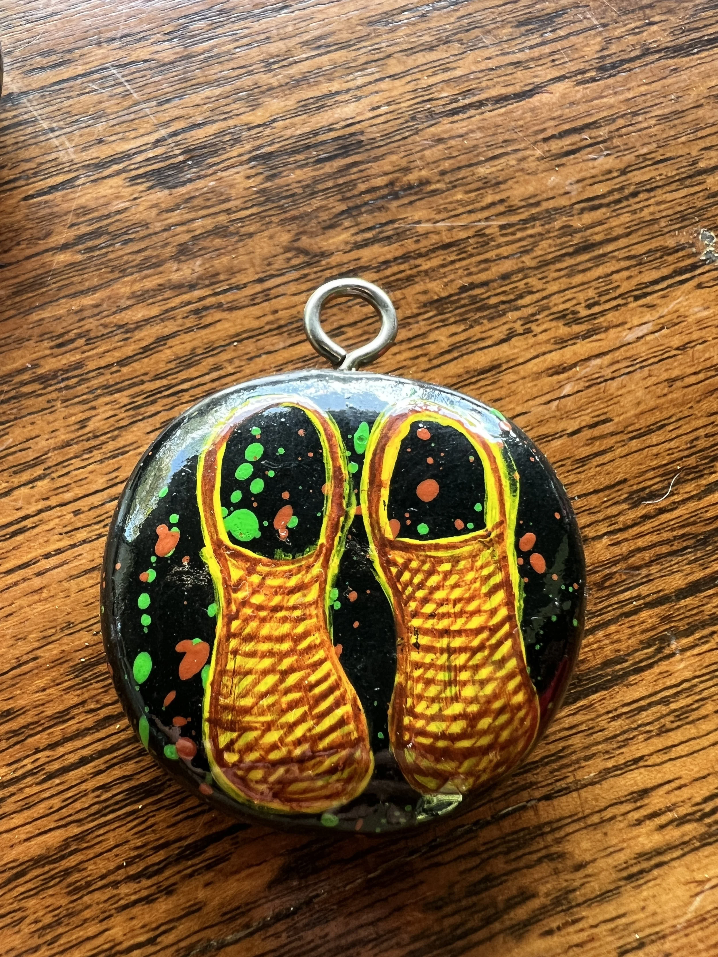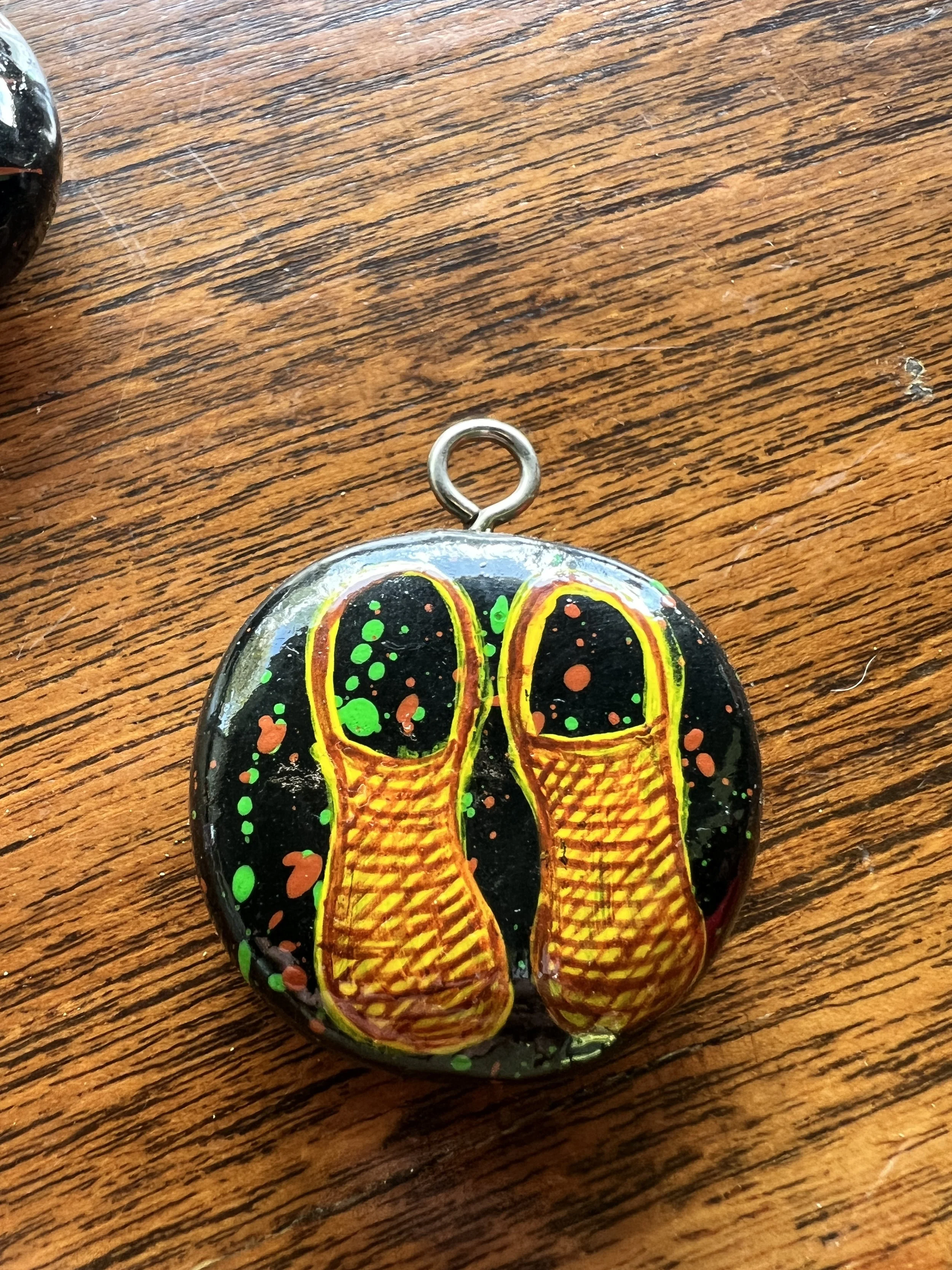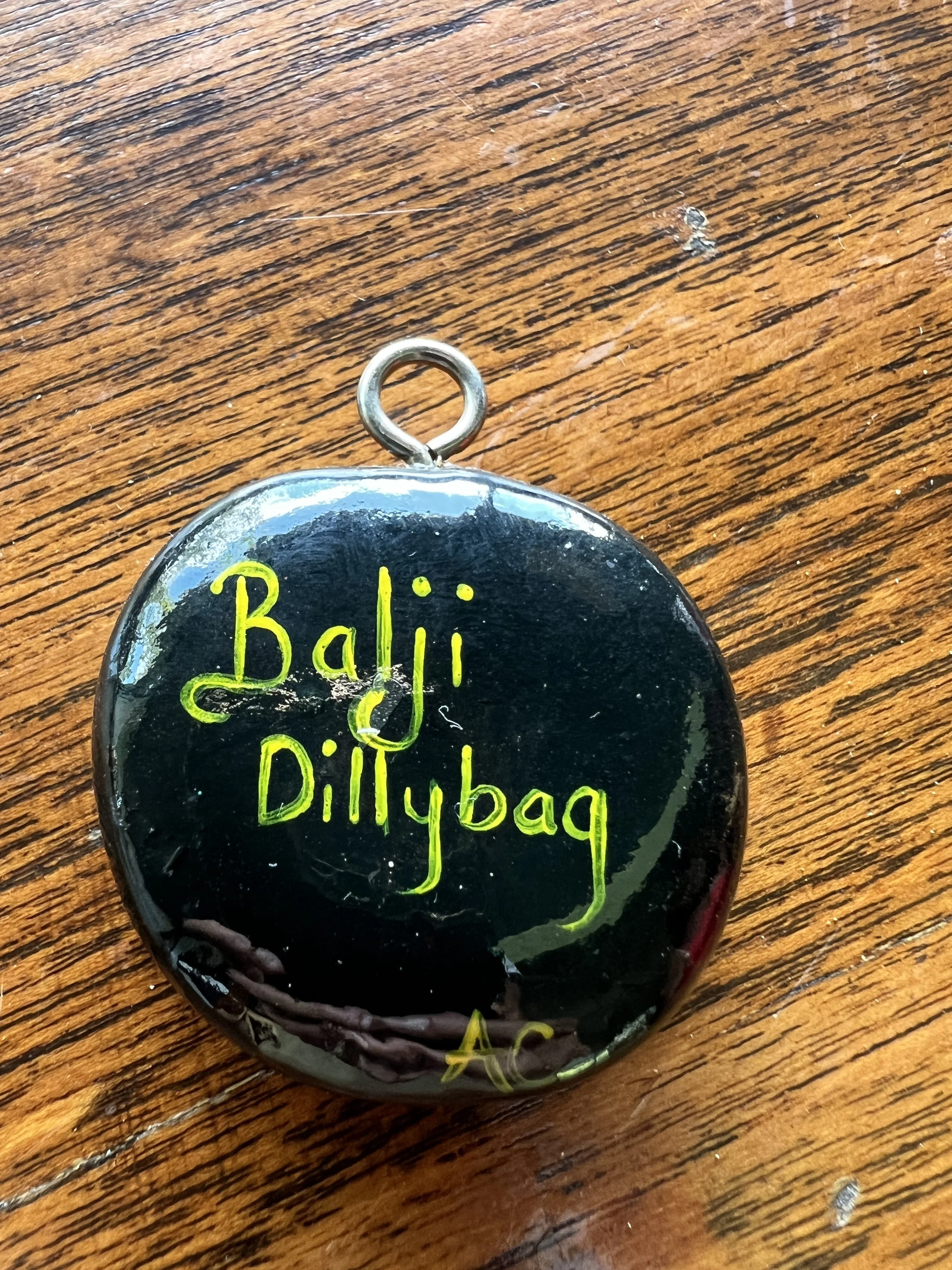 Balji is a bespoke pendant featuring intricate hand-painted detail of our culturally significant ‘dilly bag’ on a matchbox bean.